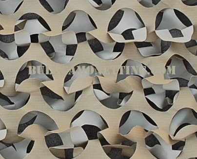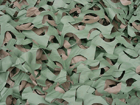 Looking for camouflage netting to cover your hunting blind, duck blind or tree house? If you need alot of camo netting, you want to purchase your camouflage netting in bulk rolls to save money. Bulk rolls are also an easy way to transport and deploy your camo nets in the field. They come in many different colors and sizes. Types of Camouflage NettingStandard Color Camo Netting There are two different types of camouflage netting. The standard camo netting are solid colors. There is no print on either side. The front and back side can be the same color or two different colors which are used to create the color combination. For example, a woodland camo net is all green on one side and all brown on the other. If it had no holes in it, it would look like a single color large tarp. Notice in the image below that one side is solid green and the other brown side you can only see because the netting is folded over.